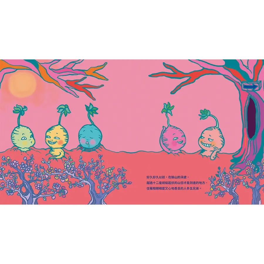 住在錦山的人參五兄弟,最喜歡泡暖呼呼的溫泉了。沒想到某天,竟被一位早起的老奶奶逮個正著!他們就這樣被帶回家,晒在院子裡,身體越晒越乾、皮膚越來越皺。直到某個清晨,一股香氣從廚房飄來,人參五兄弟像被催眠般,紛紛跳進正在沸騰的草藥湯裡──彷彿回到了他們熟悉的溫泉!好香、好舒服、好溫暖哪……卸下防備的五兄弟,將面臨什麼樣的命運轉折?