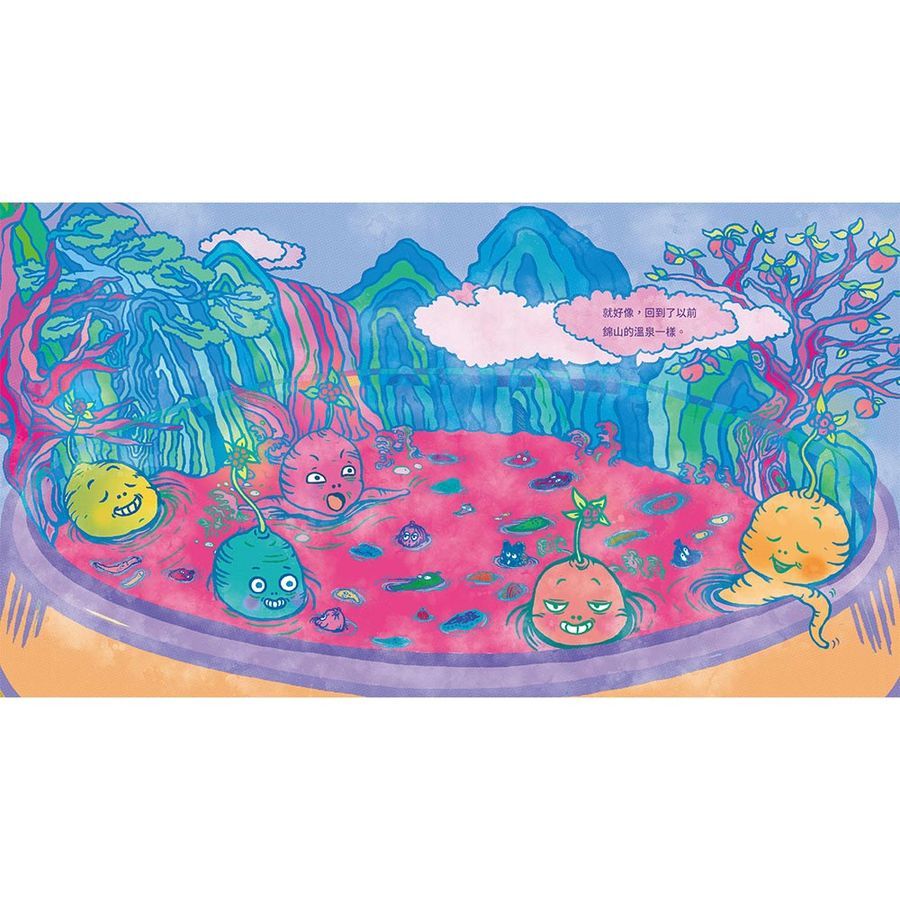 作者自童年回憶取材,以人參兄弟泡溫泉的奇遇為主軸,為「喝人參進補的由來」打造獨特敘事,引發孩子對日常事物的創意想像。角色表情生動逗趣,既讓人發笑,也隱含對大自然的好奇與關心。