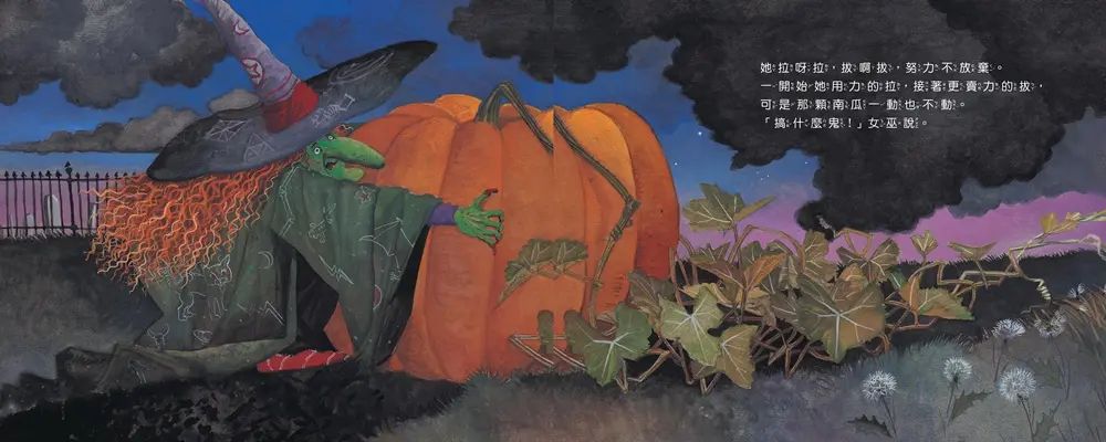 萬聖節前夕,女巫種下了有史以來最大的南瓜,她想為即將到來的萬聖節做一個南瓜派。但南瓜越長越大,大到她無法將它拔起。