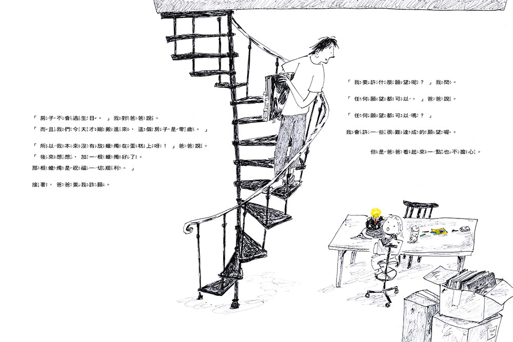 變化可能讓人感到艱難,甚至害怕。這本講述「搬家」的故事,適合所有正面對新開始或未知的不確定性的人。故事真切地刻畫了從恐懼、焦慮到興奮、希望等複雜情感。透過「願望」的實現與失落,故事也展現了孩子面對變化時的複雜感受——從恐懼、不安到希望與勇氣。最終在爸爸的陪伴下,以充滿愛的方式逐漸適應了新家。透過孩子的視角,展現了搬家帶來的不安和對舊家的思念,同時傳達了在家人陪伴下逐步適應新環境的溫暖主題。