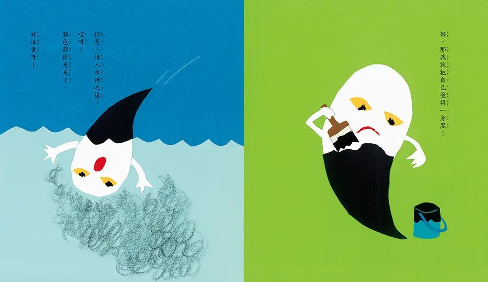 小妖怪為了嚇眼鏡兔一大跳,真的好努力啊!不但說練習就練習,學會了游泳,還嘗試了不同辦法,把自己辛苦變成了黑色模樣,可是這一切努力都因為眼鏡兔沒戴眼鏡,所以沒有被看見。有時孩子很努力的想要做一件事,最後的結果可能會因為各種不可預測的原因,與預期的不一樣,這個時候,也要用故事裡幽默輕鬆的態度來面對喔!