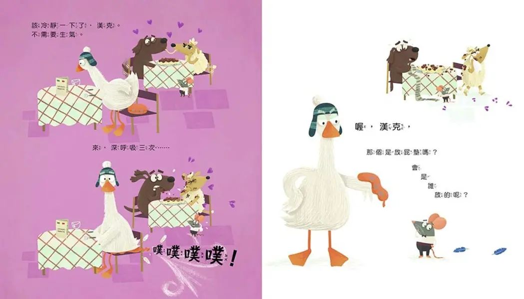 當搗蛋大王漢克遇上看似天真乖巧的表弟法蘭克,會發生什麼事呢?一場「誰比較乖」的大戰即將展開!翻開繪本,你會看到漢克一次次被冤枉,法蘭克總是若無其事,一鵝一鳥鬥智鬥趣,笑料連連。在熱鬧的混亂中,孩子將體會到——贏或輸不是最重要的,其實擁有溫暖的友情(還有一起玩)才最快樂!