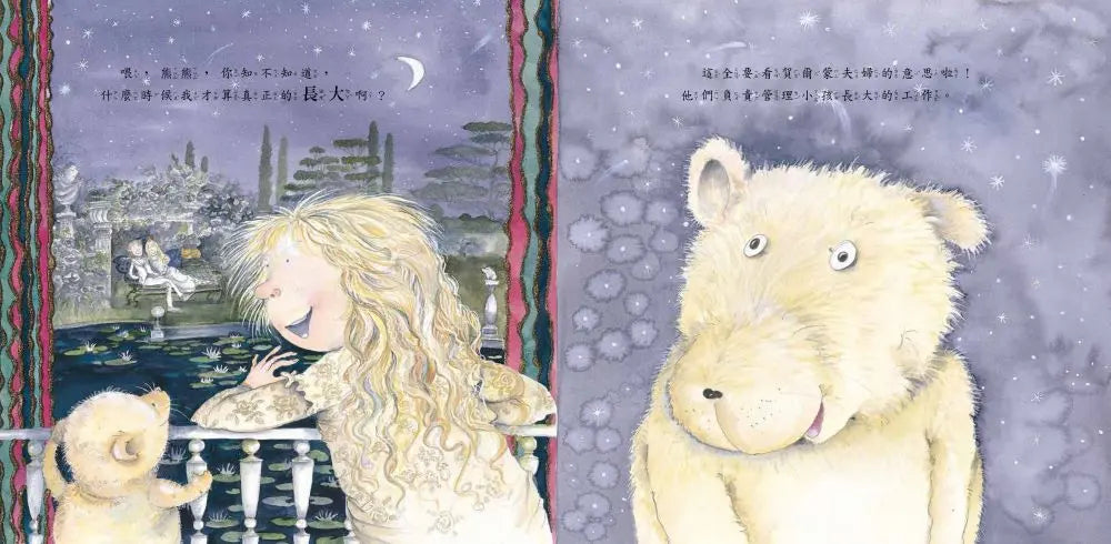有一天,小女孩問她的泰迪熊:「什麼時候我才算真正的長大?」
