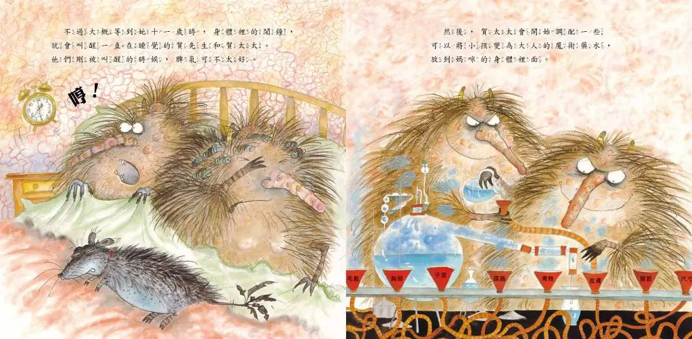 在巴貝柯爾活潑的畫筆下,泰迪熊玩偶是成長專家,賀爾蒙則化身為毛茸茸的怪獸夫婦。時機來臨時,賀氏夫婦會開始調配客製化的「魔術藥水」,青春期身體的各種反應都由此而來!年輕時候的爸爸媽媽,也成為書中的活教材,讓孩子理解原來身體的這些「毛病」,都是成長路上必經的改變。