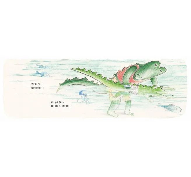 不過,小鱷魚因貪玩不想離開而哭鬧起來。這時,鱷魚爸爸該怎麼做呢?他帶著小鱷魚一同聆聽大自然的聲音,有海鷗「咿啊~咿啊~」,有蟋蟀「唧唧唧!」,小鱷魚睜大眼睛、豎起耳朵,感受好多沒見過的動物與景物。一路上,他們仔細觀察周圍的景色,入夜後還一起觀賞美妙的星空,發出「哇--!」的讚嘆。