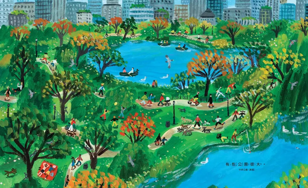 法國新銳插畫家馬克.麥耶斯基,以寬闊線條與明亮色彩描繪公園風景,搭配簡潔而富詩意的文字,讓孩子在欣賞畫面的同時,自然吸收地理、生態與文化知識。