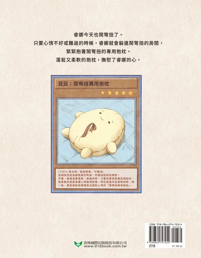 睿娜有一個軟綿綿的鬧彆扭專用抱枕——豆豆,