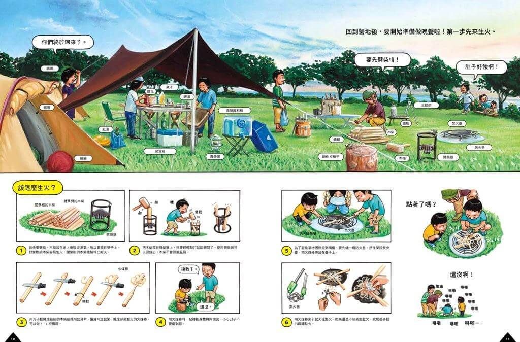 鈴木典丈以細膩生動的畫面,帶領讀者身歷其境:彷彿聽見火焰的劈啪聲,甚至感受到晚風的涼意。從升營火、搭帳篷,到煮晚餐、仰望星空、分享心事──每一件事都不只是「活動」,而是孩子學習獨立、觀察自然、動手實作的開始。