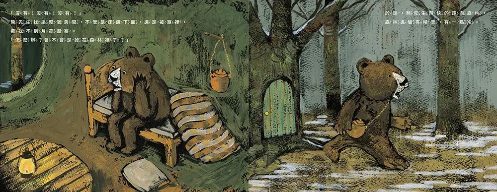 驚慌不已的他,決定前往森林裡尋找他的月亮,