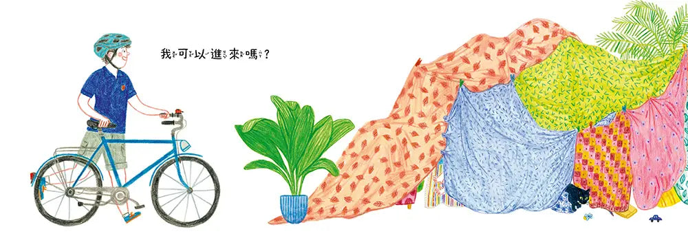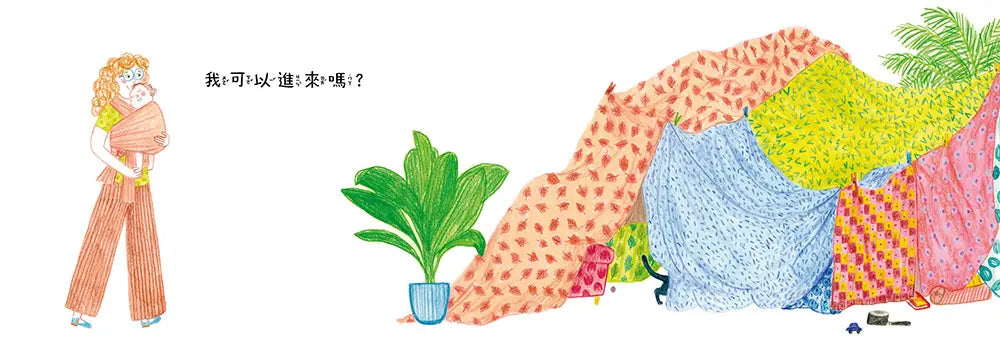 《我可以進來嗎?》捕捉了孩子在遊戲中展現的想像力、創意和互動,在「外面」的大人和「裡面」的小孩,都是故事中不可或缺的角色。