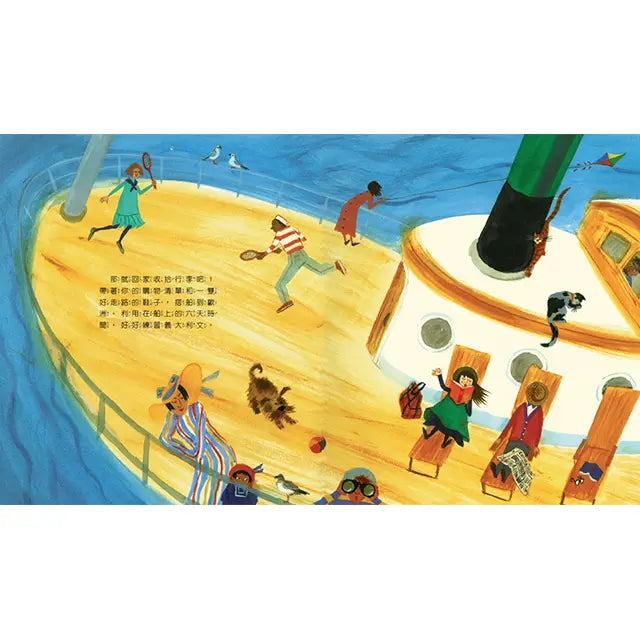 ★看完了這本書之後,小朋友可以再次打開扉頁,仔細看看那幅世界地圖,用你的小小食指指著美國,然後順著故事的發展找一找去過的國家,享受一下紙上環遊世界的樂趣吧!