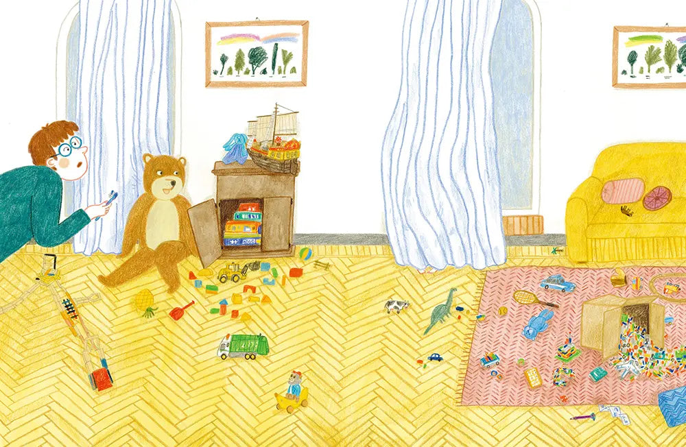 隨著越來越多的動物加入這場想像的遊戲,爸爸和小男孩的動作一刻都沒有停下來,他們一邊猜動物,一邊完成從起床到上學前的每個步驟,脫下睡衣、換上衣服、襪子和褲子,朝著準備出門上學的目標前進。