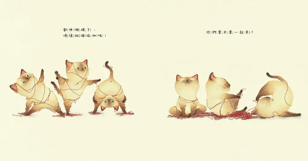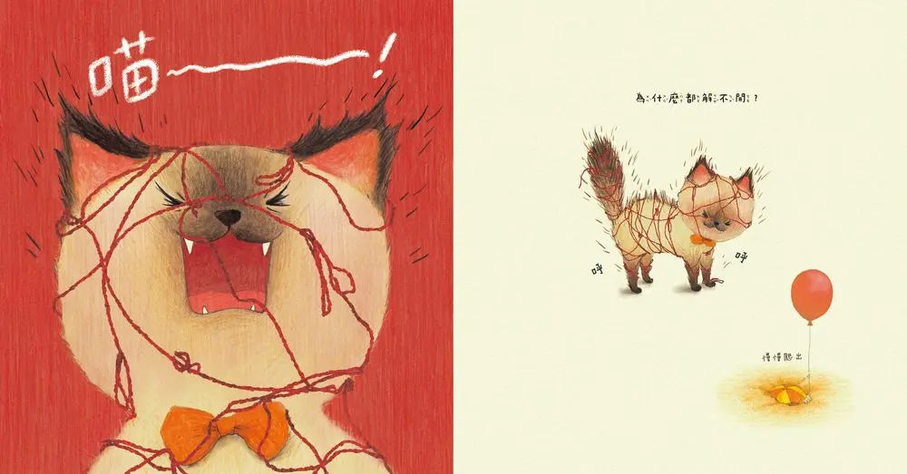 貓咪愈是想掙脫,紅色的毛線就纏得愈緊……