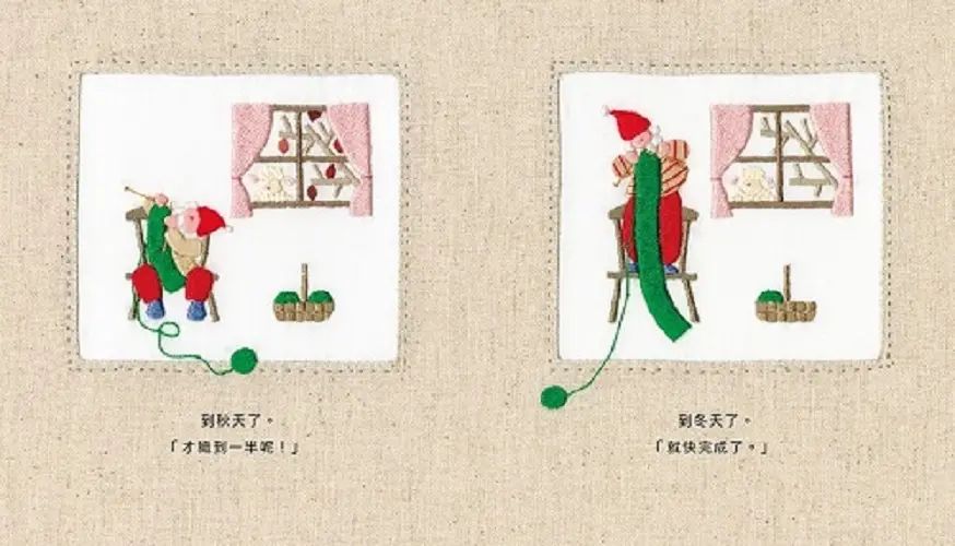 又花了很長、很長的時間,聖誕老公公一針一線的縫製圍巾。